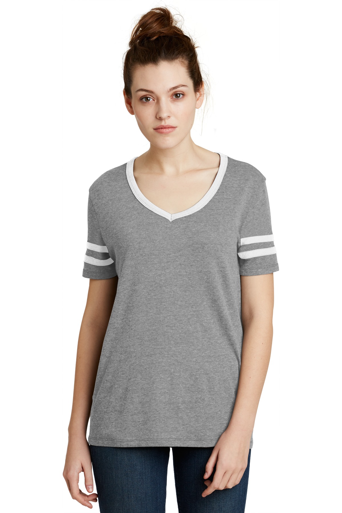 Exclusive Style! It's your favorite sports jersey in a relaxed t-shirt form. Sleeve striping and contrast collar evoke a nod to athleticism. 4.4-ounce, 50/50 cotton/poly Relaxed fit Tear-away label Contrast bound neckline, mitered at center front Contrast stripes on sleeves Vintage 50/50 fabric infuses each garment with unique character. Please allow for slight color variations. Alternative Apparel reserves the right to prohibit the addition to any Alternative Apparel product any mark, name, design or logo that does not meet the high standards of the brand. Please contact your sales representative with questions. These products may not be resold without embellishment.
