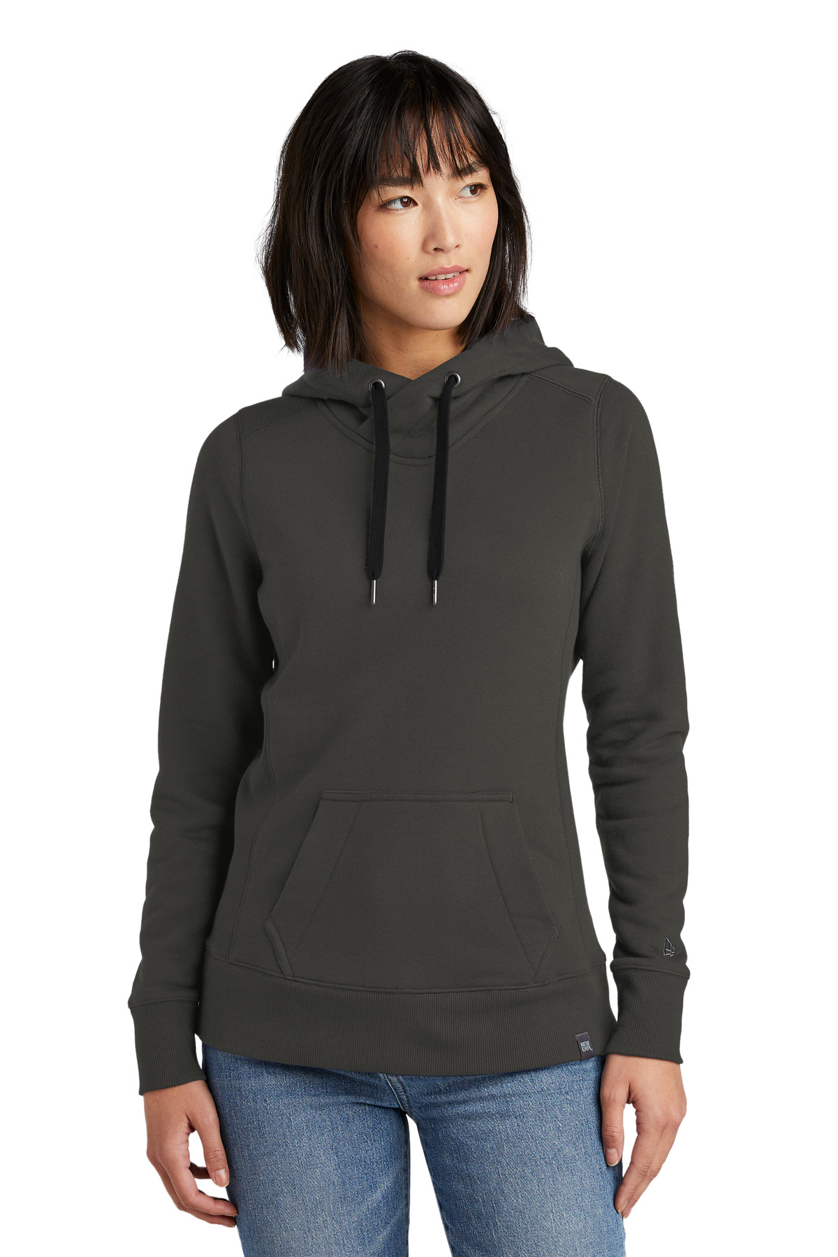 This super-soft hoodie is great for lounging but can also amp up your street style. 9.4-ounce, 52/48 cotton/poly sueded French terry Coverstitched seams Lined, twill-taped, 3-panel crossover hood Woven New Era patch label Black nickel grommets Wide drawcords with New Era metal tips Rolled-forward shoulders Rib knit side panels Front pouch pocket Embroidered New Era flag logo on left sleeve Rib knit cuffs and hem Woven New Era badge at hem