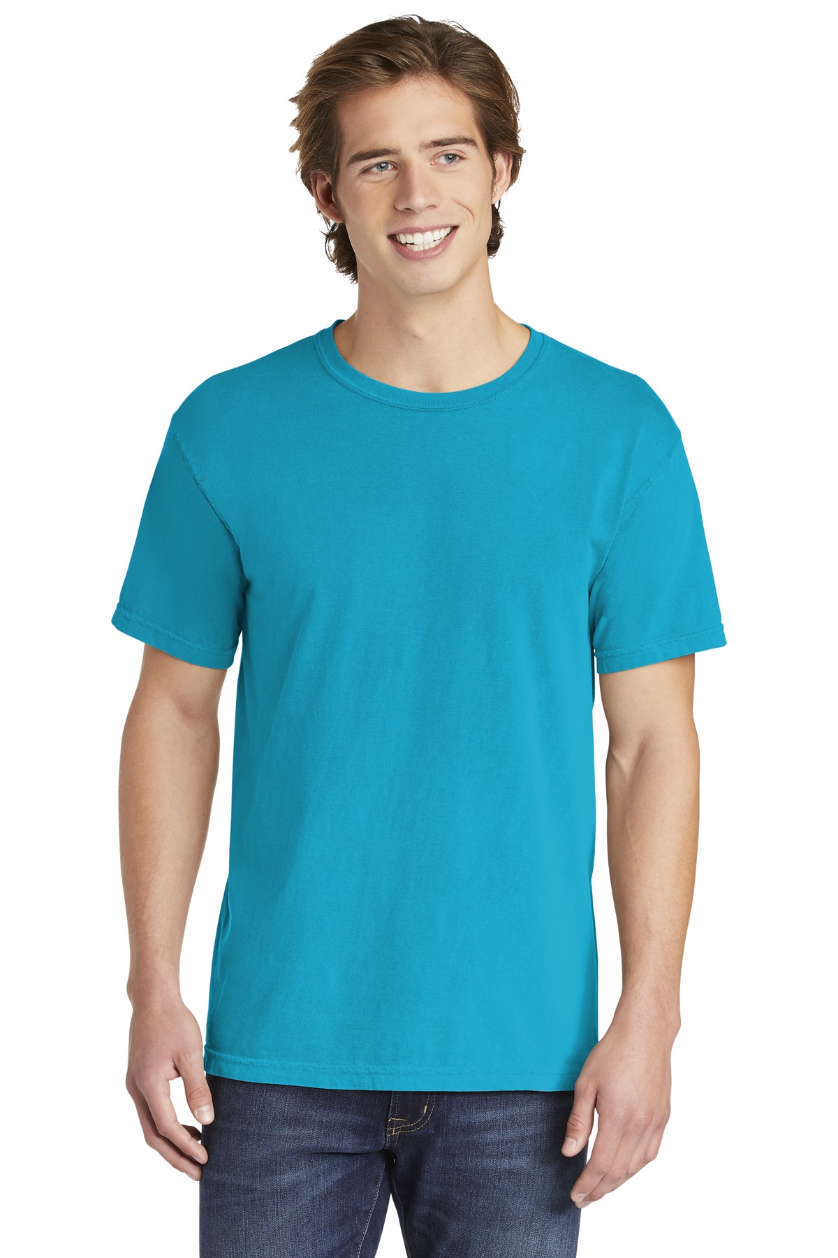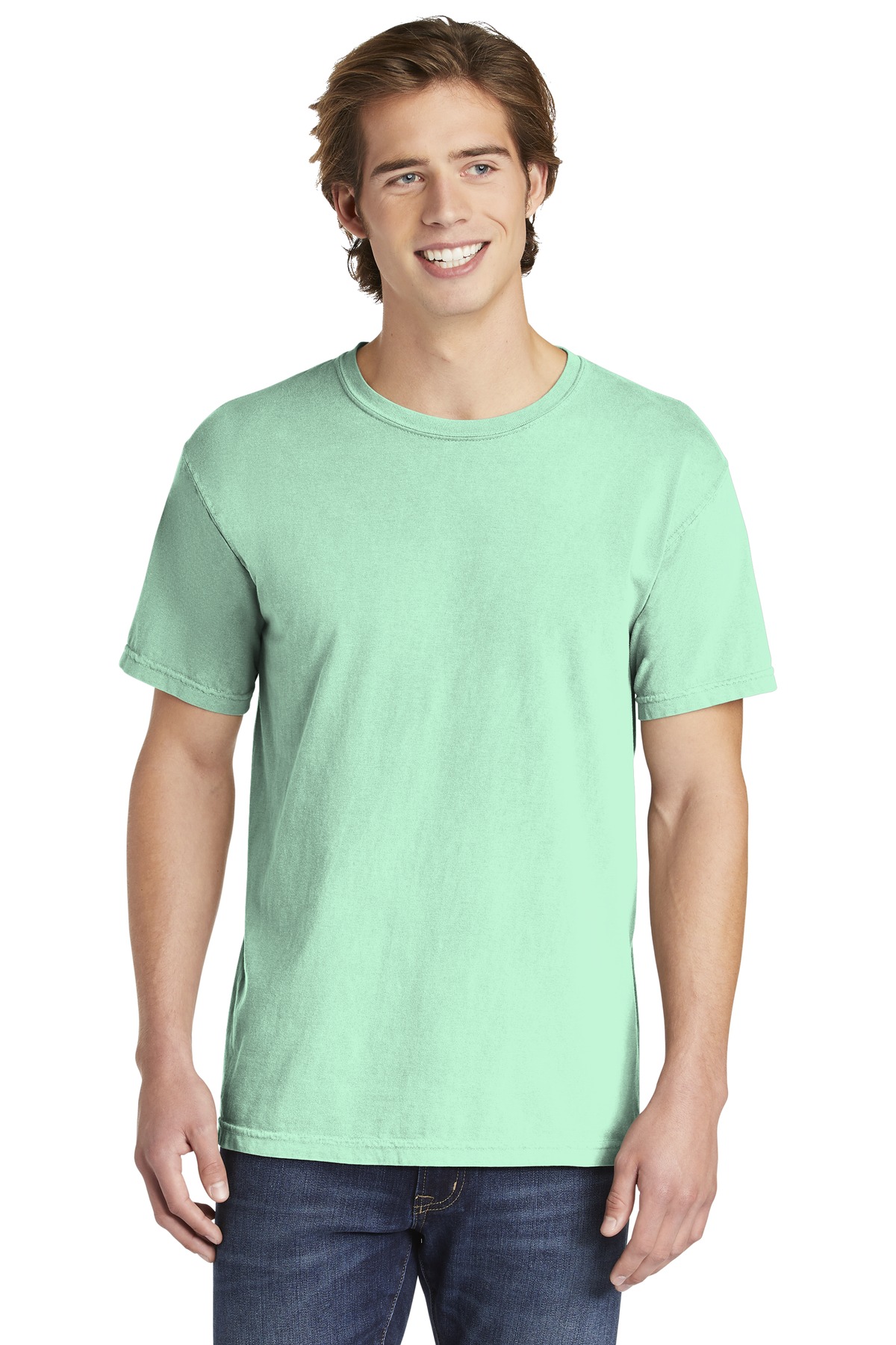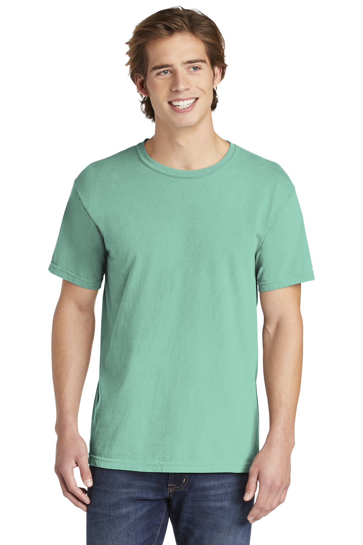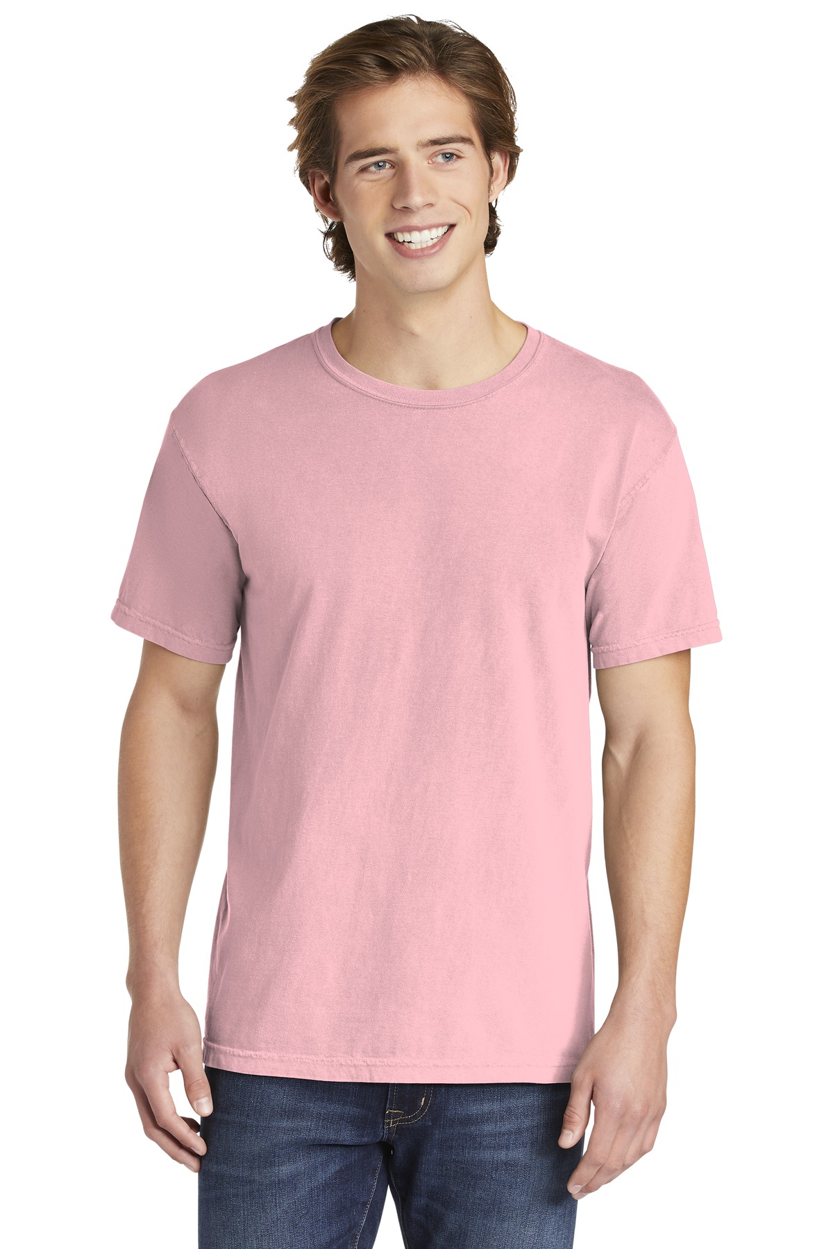6.1-ounce, 100% US ring spun cotton Soft-washed, garment-dyed fabric Top-stitched, classic width rib collar Twill-taped neck and shoulders Twill label Relaxed fit, seamless body Double-needle collar and bottom hems The garment-dying process infuses each garment with unique character. Please allow for slight color variation in production and washing. Special consideration must also be taken when printing white ink on garment-dyed cotton.