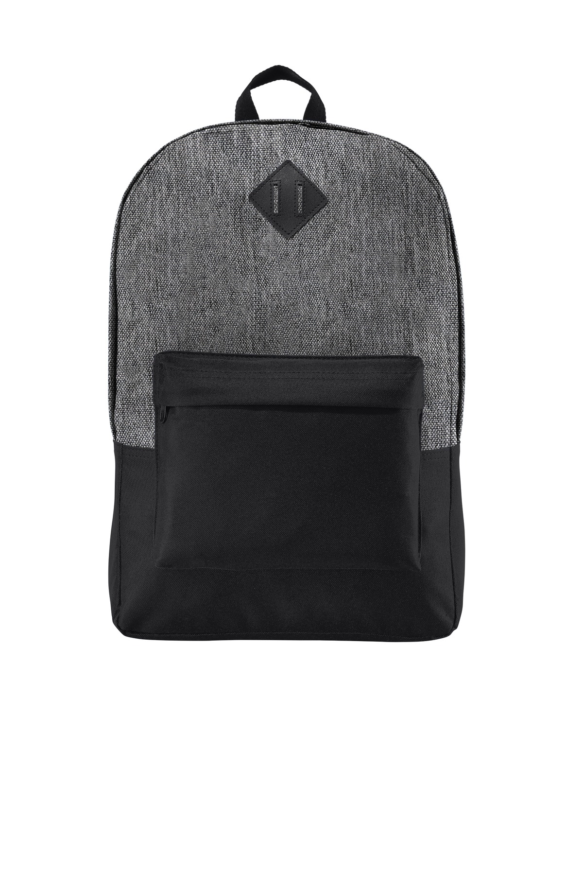 With modern touches like a laptop sleeve and office organizer, this backpack still has that retro flair, but with an updated look and functionality. 600 denier polyester canvas Large main compartment Suspended, padded laptop sleeve Padded shoulder straps Front office organization Front zippered pocket Faux leather diamond patch Laptop sleeve dimensions: 11.25'h x 11.5'w x 1'd; fits most 15' laptops Dimensions: 17.75'h x 12.25'w x 5.25'd; Approx. 1,141 cubic inches Note: Bags not intended for use by children 12 and under.